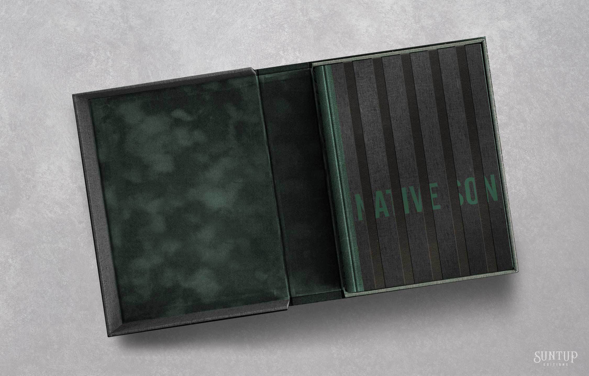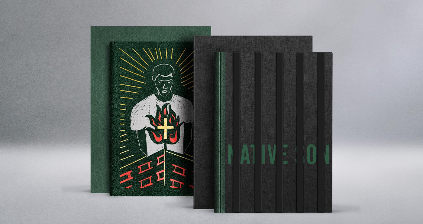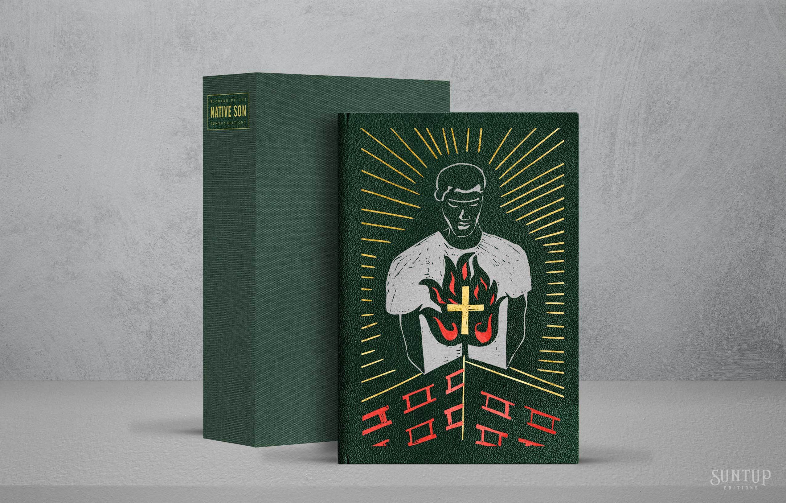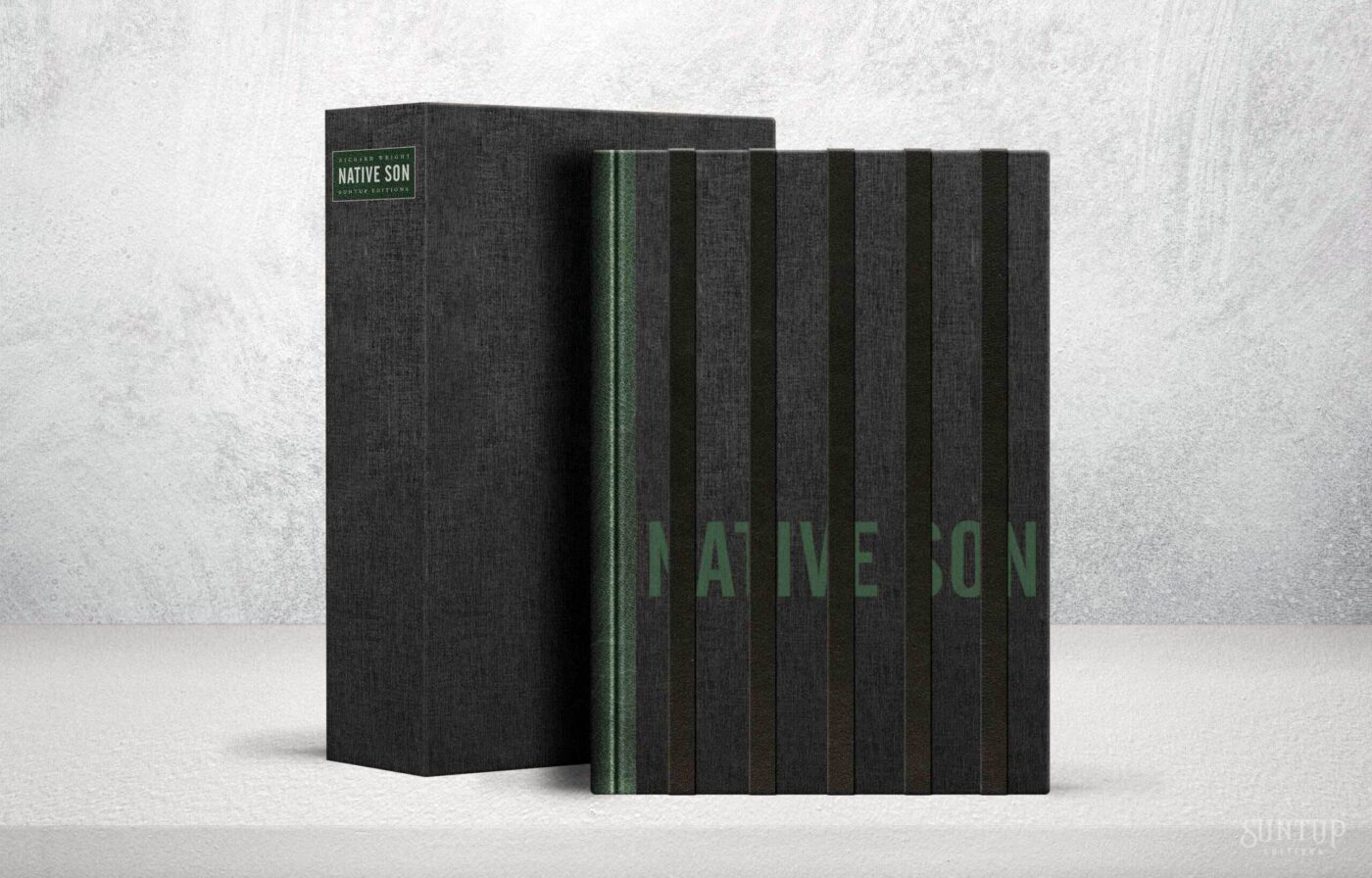 The Numbered edition of 250 copies is a quarter goatskin binding designed to reflect the central conflict of Native Son—a struggle for identity within a system built to confine.